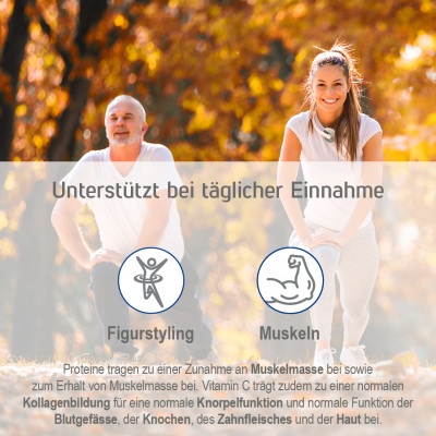 Gerade wenn wir intensiv Sport treiben, uns einen wohlgeformten, muskulösen Körper wünschen oder unsere Muskeln bis ins höhere Alter erhalten wollen, brauchen wir Proteine zum Aufbau und Erhalt kraftvoller Muskeln.4